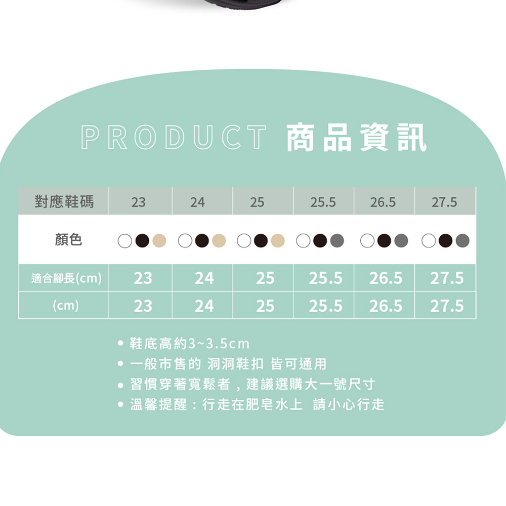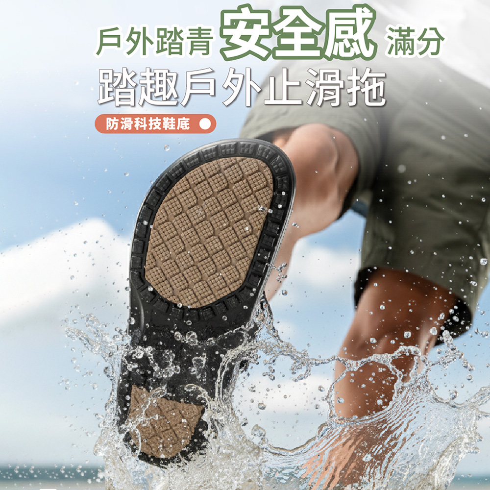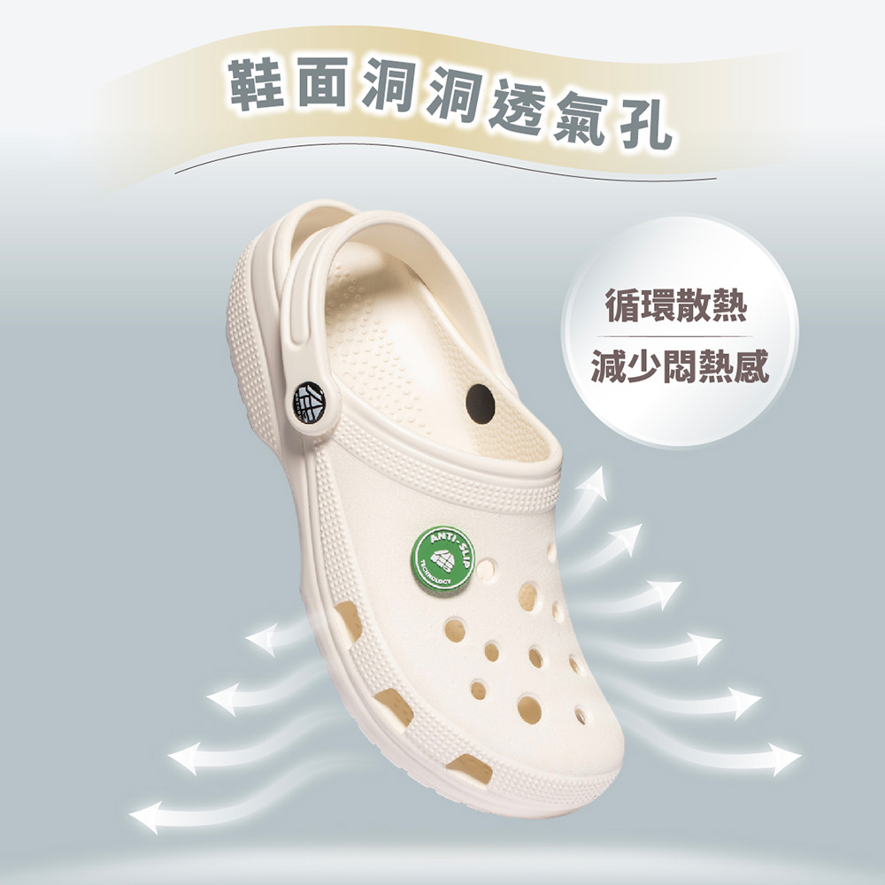 防滑鞋底|特殊貼片設計,雨天防滑鞋首選 安全包頭|完整包覆腳趾,戶外露營鞋必備 輕量成型|高彈EVA材質,老人防滑鞋推薦 快速清洗|沖水即淨快乾,露營海邊都適用 足底顆粒|提升摩擦力,行走穩定不易滑動 可調後跟|自由切換穿法,防滑拖鞋推薦 透氣鞋洞|可搭配鞋扣,乾爽舒適更有型