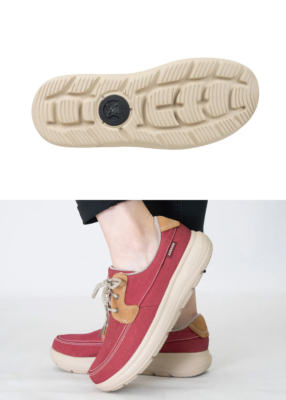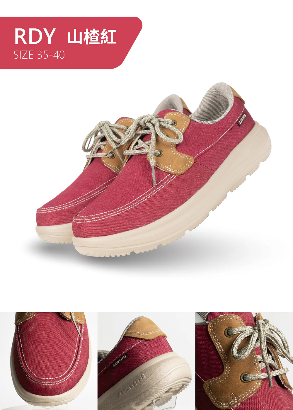 USTINI 我挺你健康鞋 水土服氣綁帶布鞋 - 山楂紅 校正步態 防潑水 接地氣排靜電 足弓全方位支撐